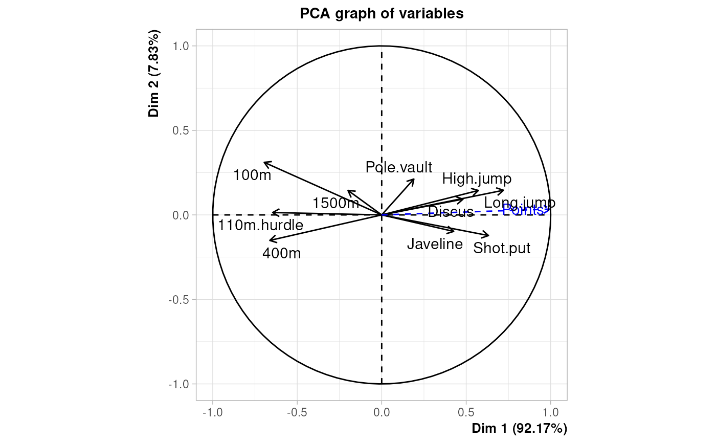 pcaiv <- PCAiv(decathlon[,1:10], decathlon[,12:13])